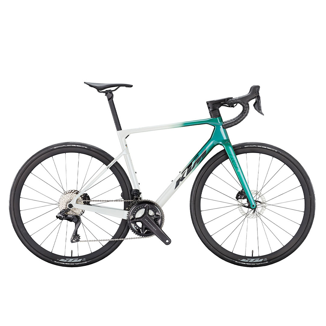Leve e rápida, design aerodinâmico numa geometria consensual e ponderada para estrada.