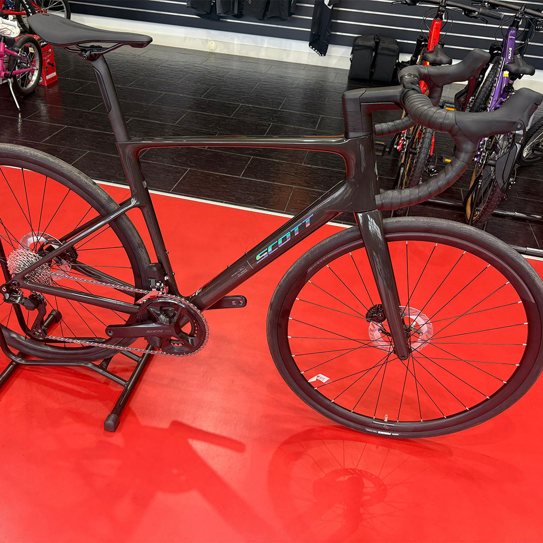 - Equipada com Shimano 105 Di2, 12 velocidades
